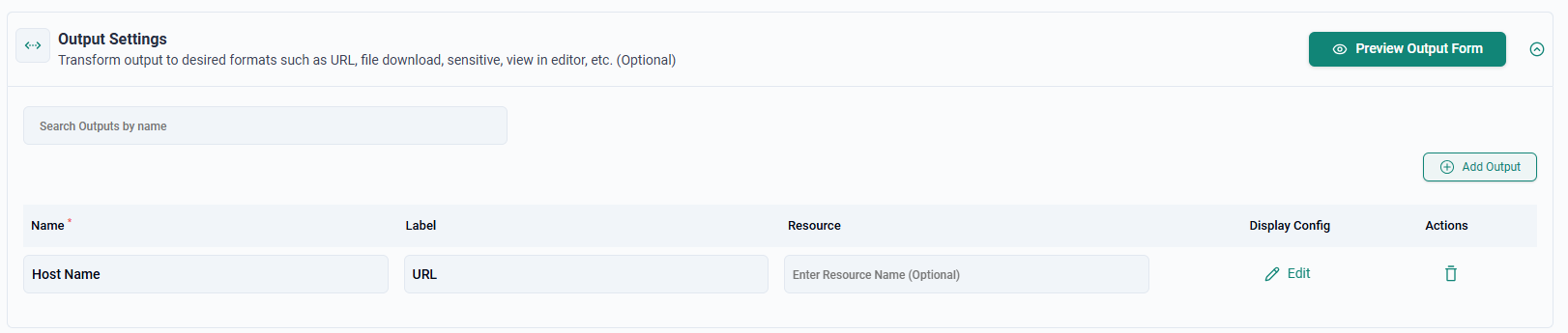 - Click on "Add Output"