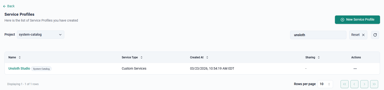 You should now see the newly created SKU (e.g. unsloth).