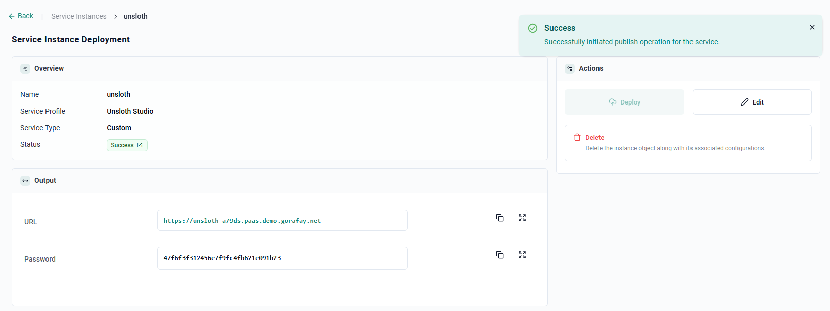 Now, we are ready to test our newly created Unsloth Studio App SKU.