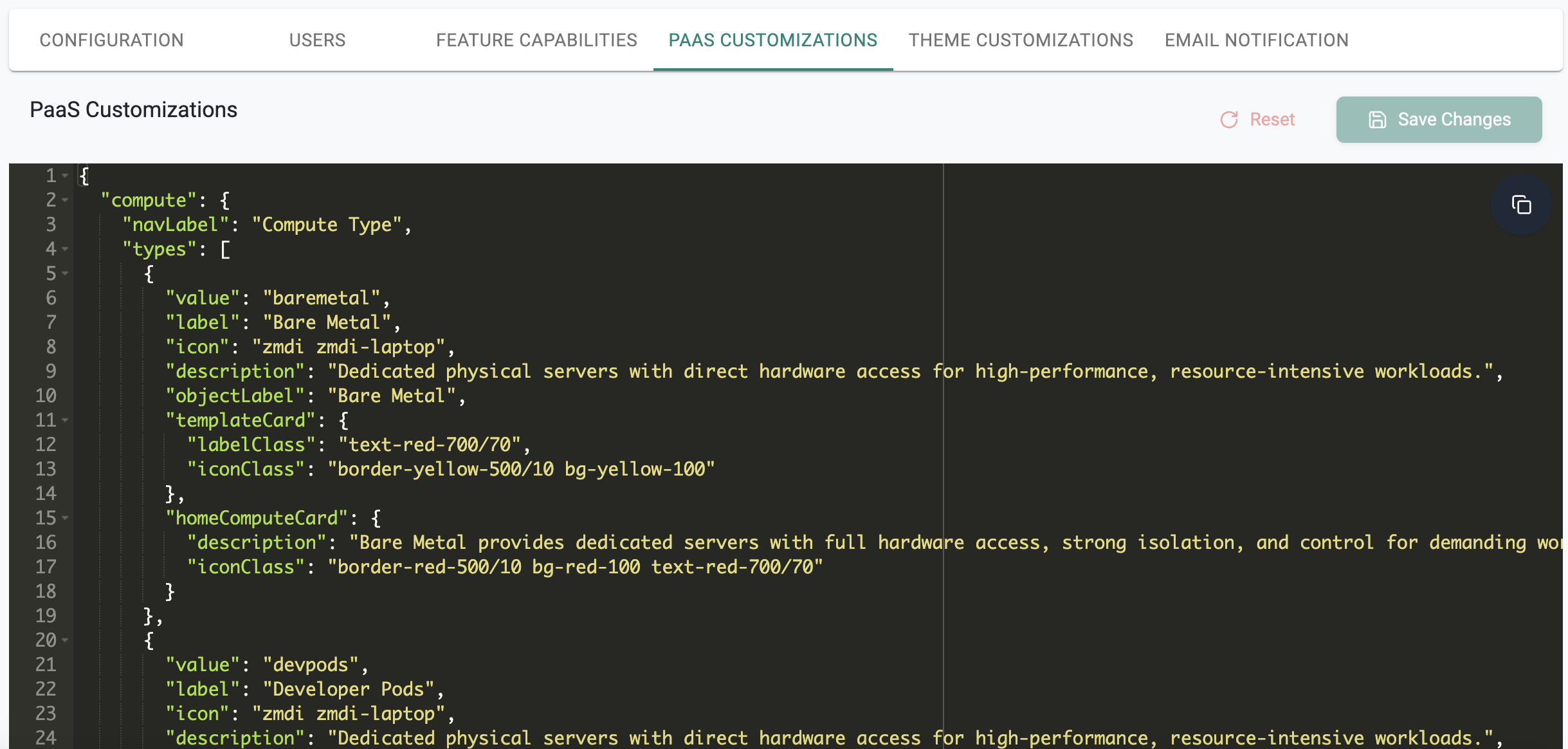- Click on PaaS Customizations