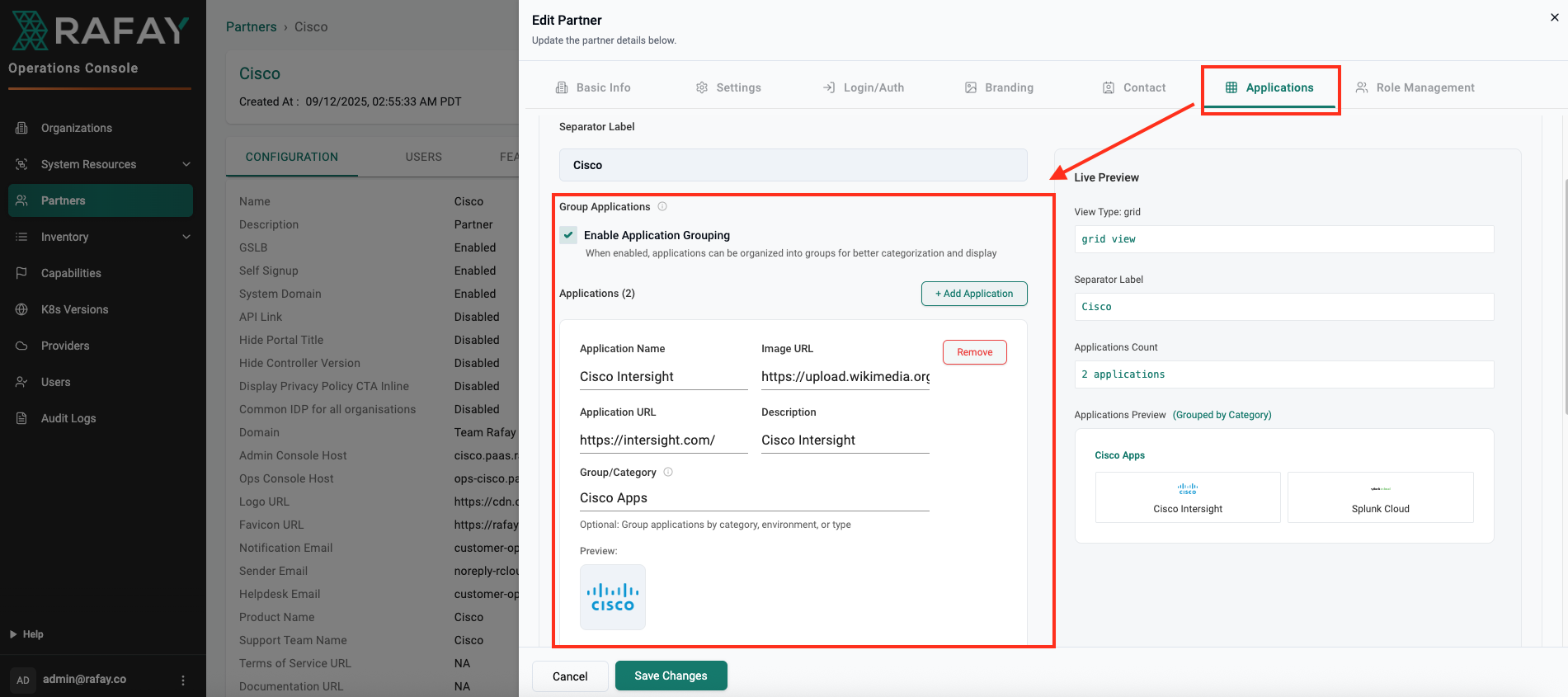 You can optionally group multiple SaaS Apps into a category (e.g. Cisco Apps)