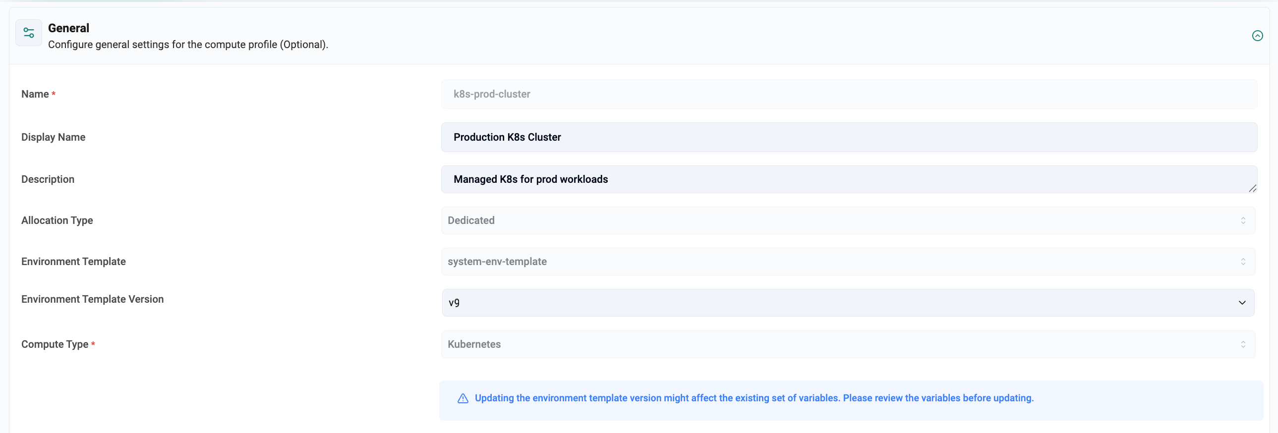 Managed K8s for prod workloads) - Choose the appropriate Environment Template from the dropdown (e.g.,