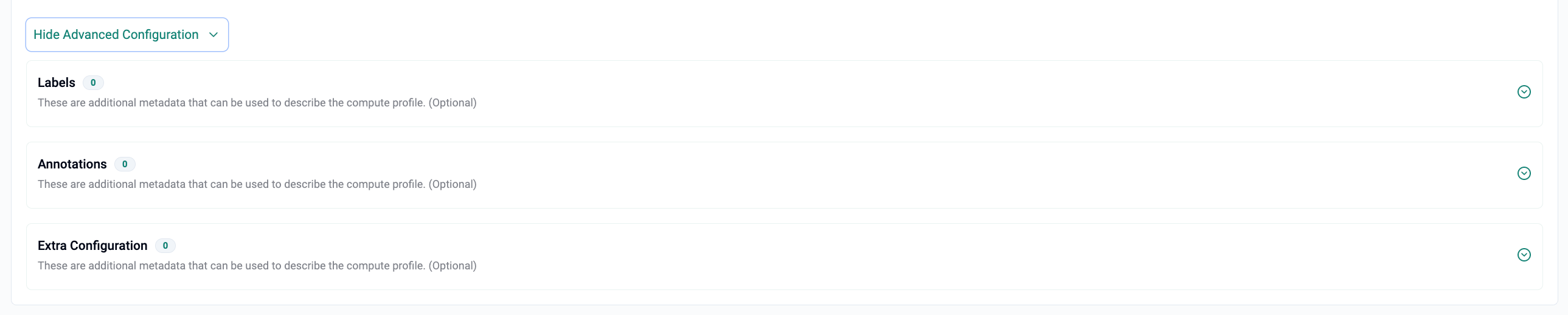 | Labels | N/A | key-value | Optional metadata to help categorize and identify the compute profile |