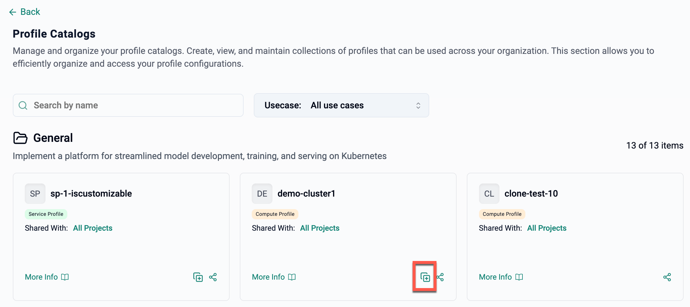 Rafay provides system templates and profiles to enterprise organizations in a centralized, read-only location called the Profile Catalogs. These serve as baseline templates that can be used across the organization.