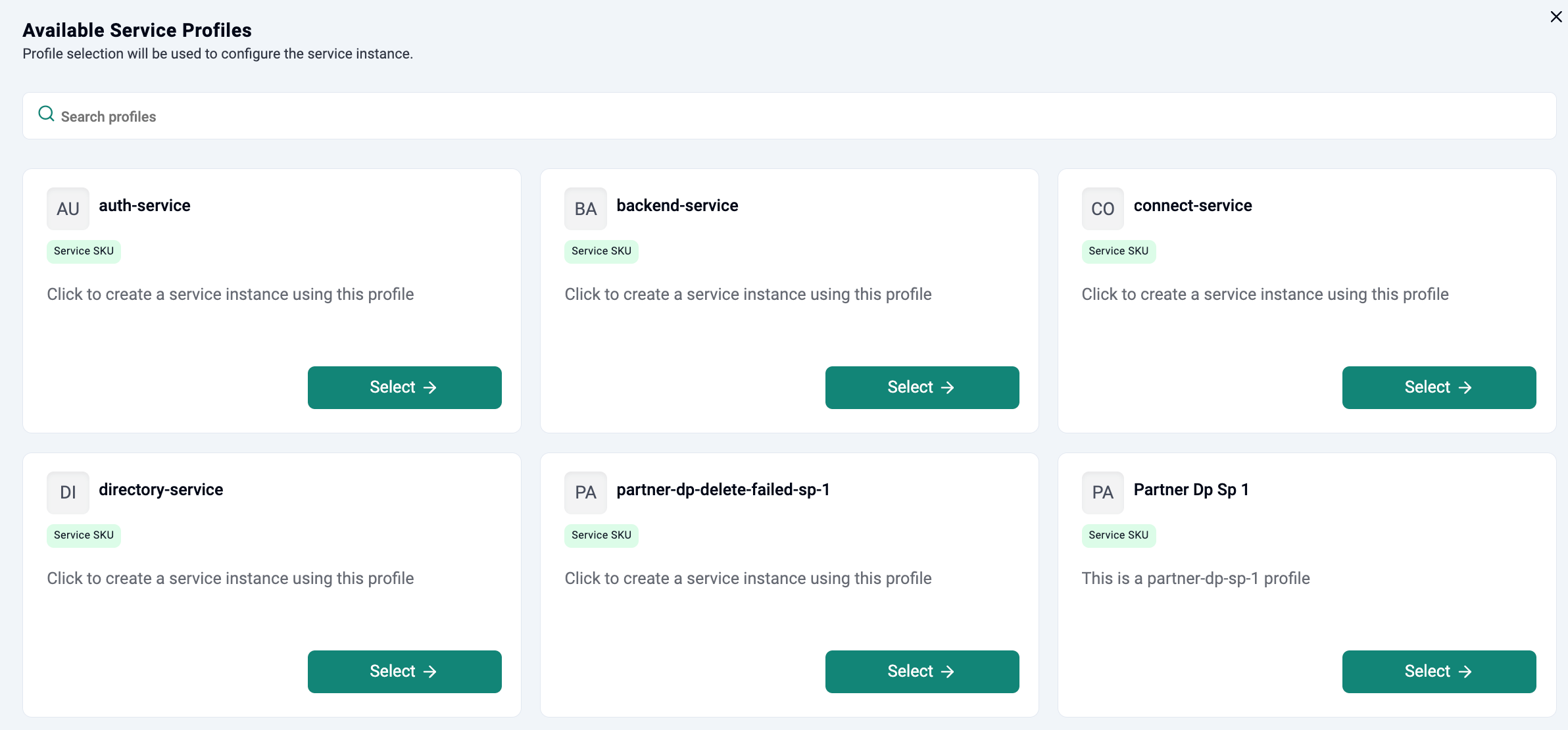 The list of service profiles available for use with service is displayed here. Choose the desired profile and fill in the necessary details. Service profiles are displayed in ascending order during instance creation flows.