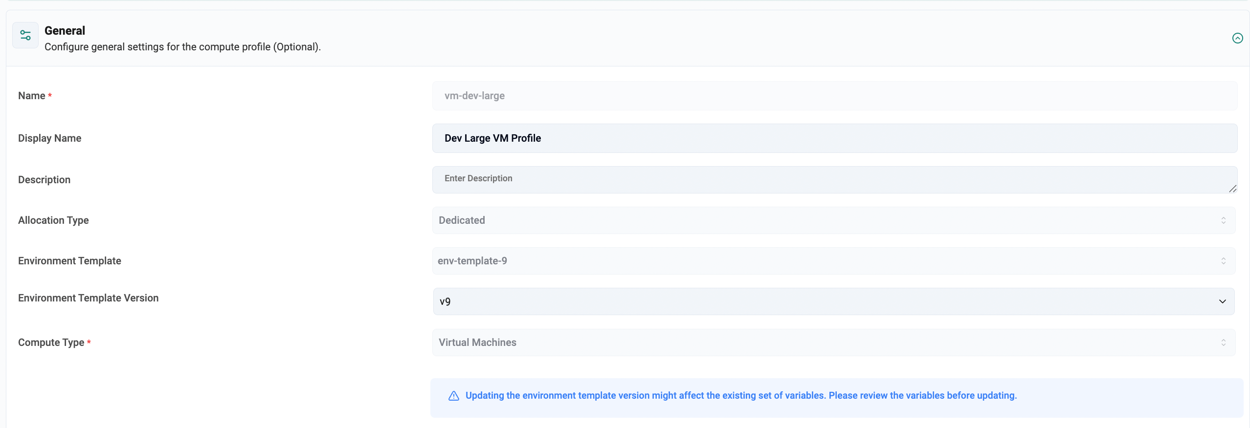 Dev Large VM Profile) - Description (Optional): Add notes to describe the profile’s purpose or resource configuration