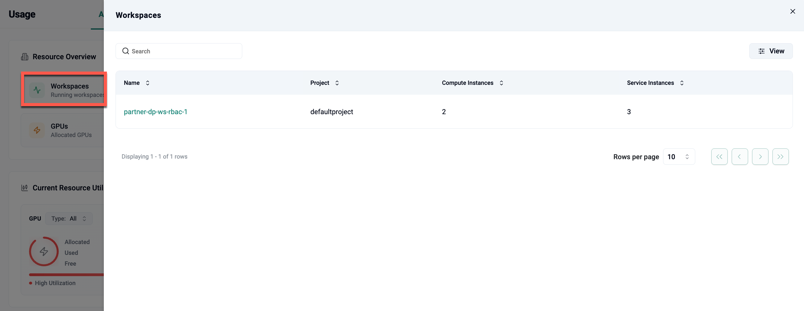 Workspace visibility follows RBAC rules: - Only workspaces accessible to the user are listed - Resource data is aggregated only from permitted workspaces - Project-scoped instances are displayed based on access permissions