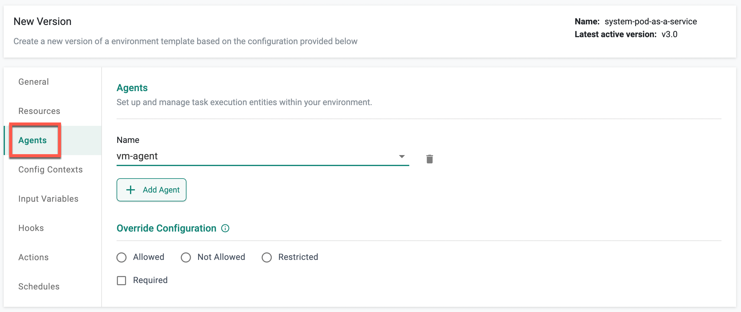 - Go to Agents and configure the required Agent to drive the workflow. Select the Agent from the dropdown list. If no Agents are shown, the Agent may need to be set up (refer to the prerequisites).