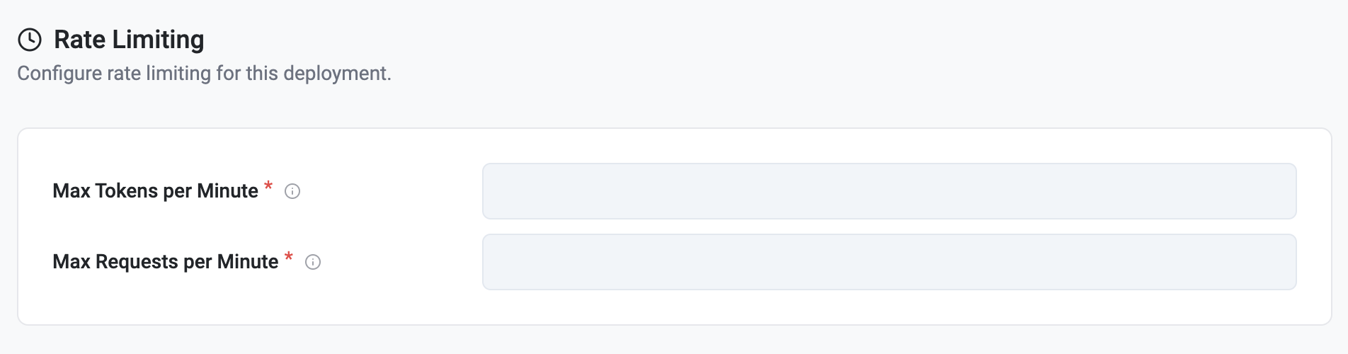 Rate limits are critical to ensure that a single user does not overwhelm the shared platform and consume all the available resources. Admins should specify the following parameters for rate limiting.