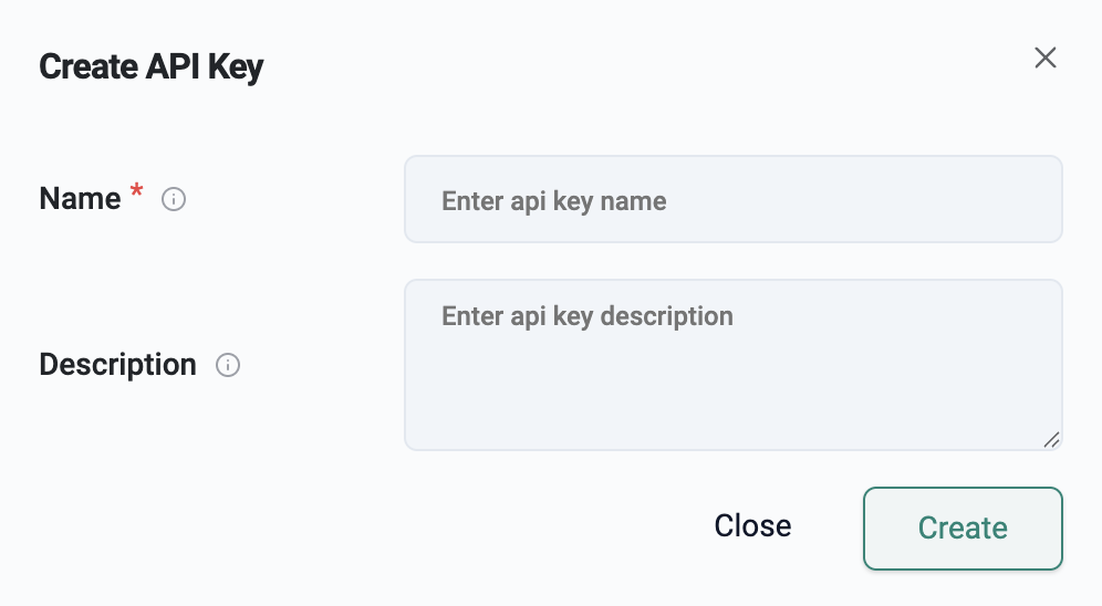 Once the user clicks on "Create", the API Key is displayed to the user.