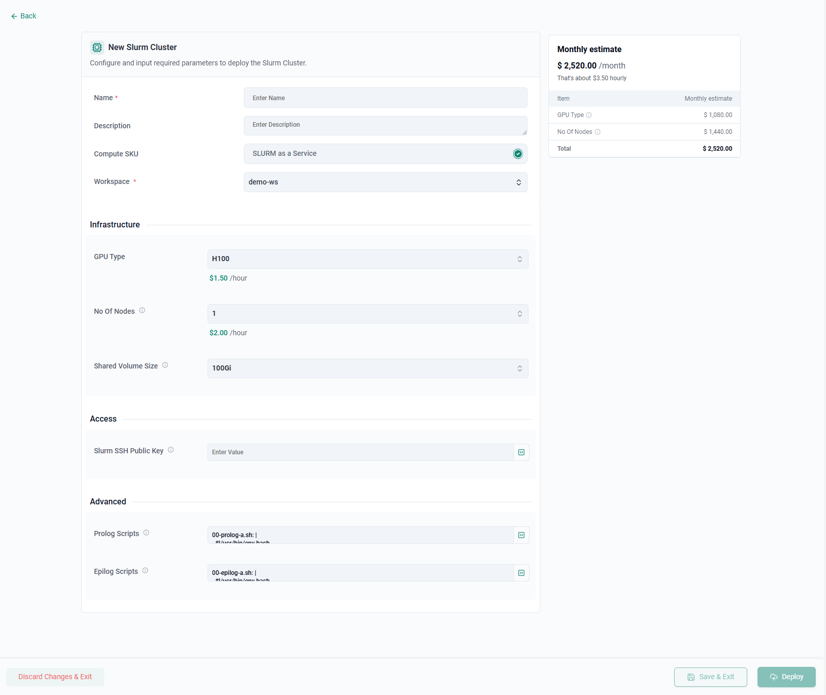 - Enter a value for the GPU type, like "H200". Note, this value must match the value used within the SKU during deployment.