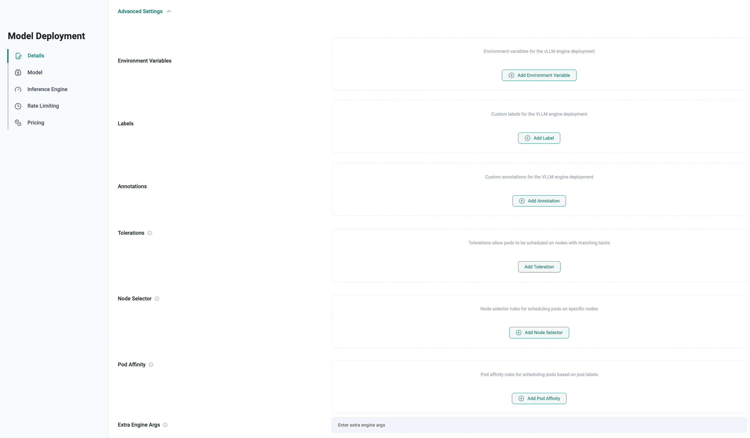 • Extra Engine Arguments: Additional command-line arguments passed directly to the inference engine.