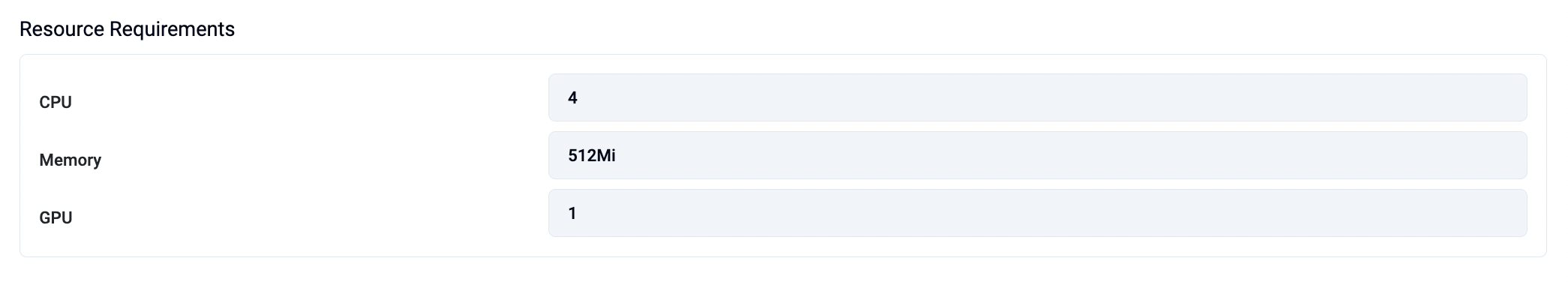 Resource values depend on model size and inference engine requirements.