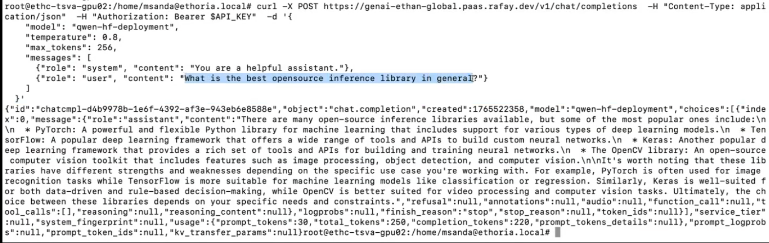 • The generated output from the deployed model