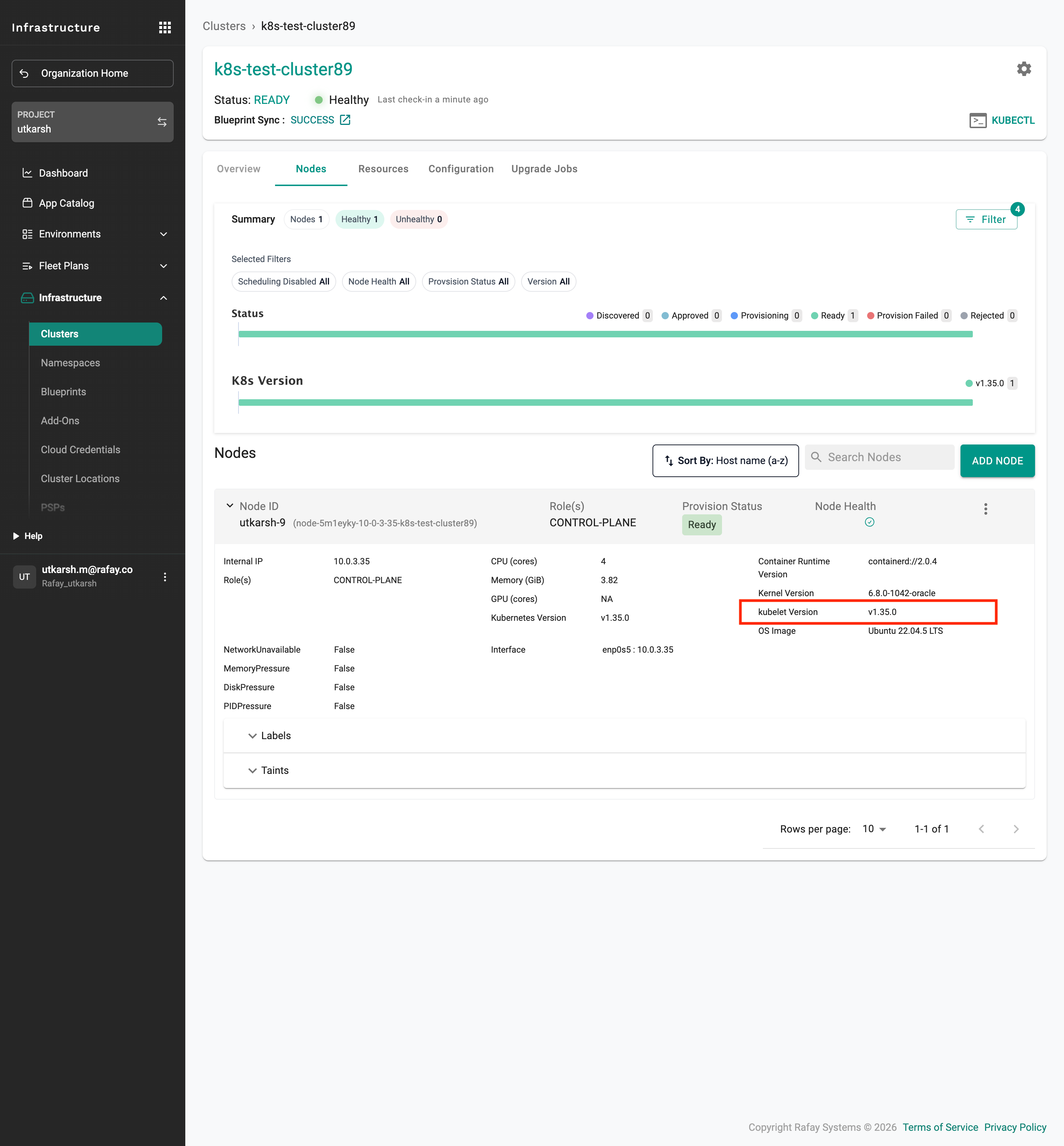 Kubernetes v1.35 clusters provisioned and managed by Rafay are CNCF conformant. We have submitted the conformance results for v1.35 to CNCF, meeting all CNCF requirements as we do for every release. This ensures that Rafay's support for Upstream Kubernetes adheres to the required APIs and maintains compatibility with open source community versions.