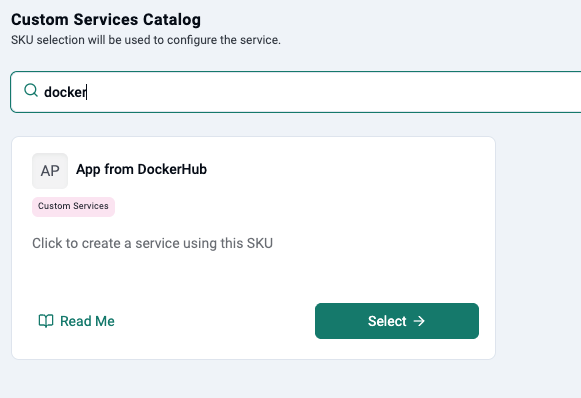 Take a Docker image. Wrap it with defaults, policies, controlled overrides, and tenant-aware deployment logic. Publish it as a self-service offering. Let the user launch it through a clean, simple workflow.