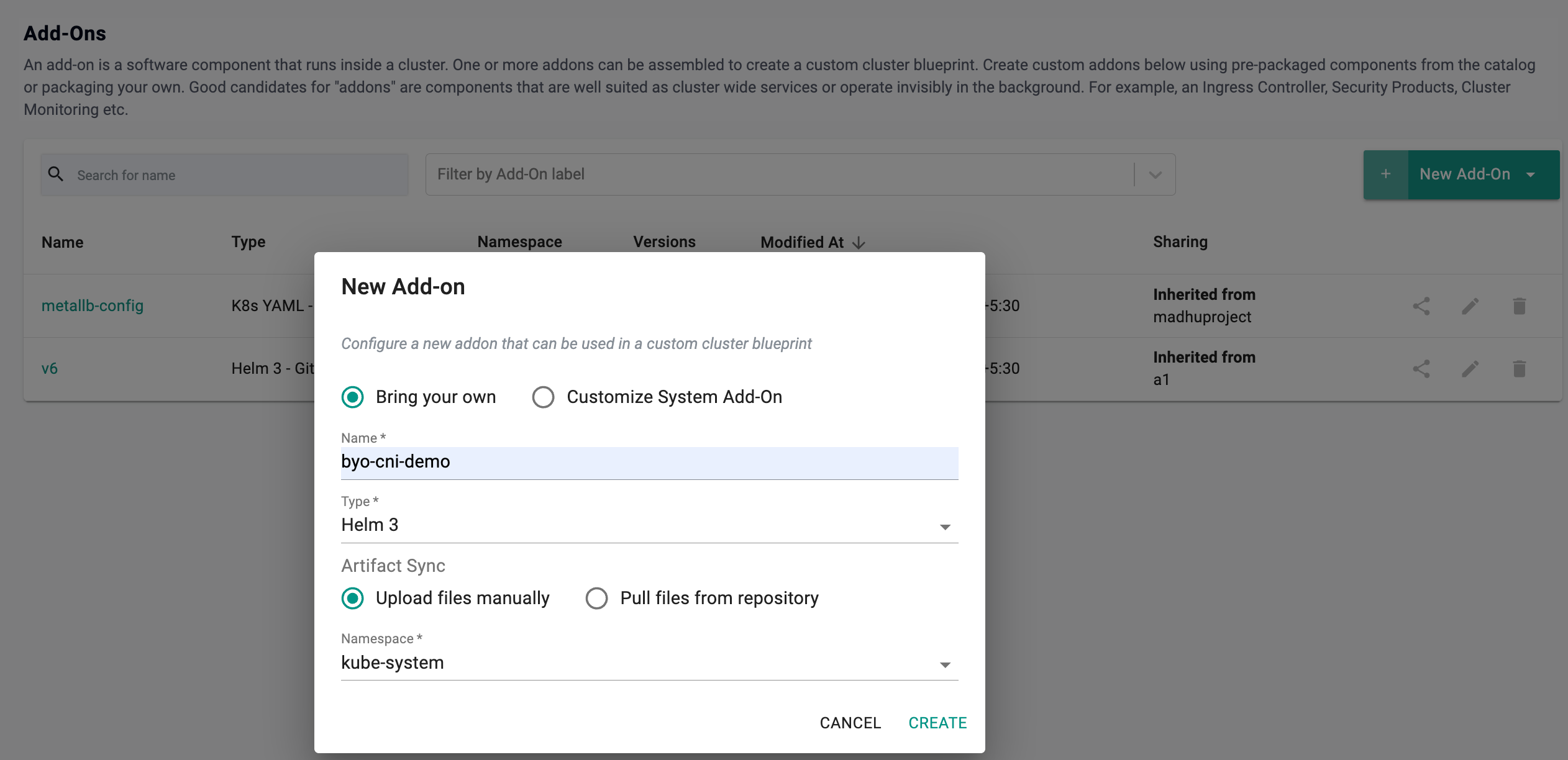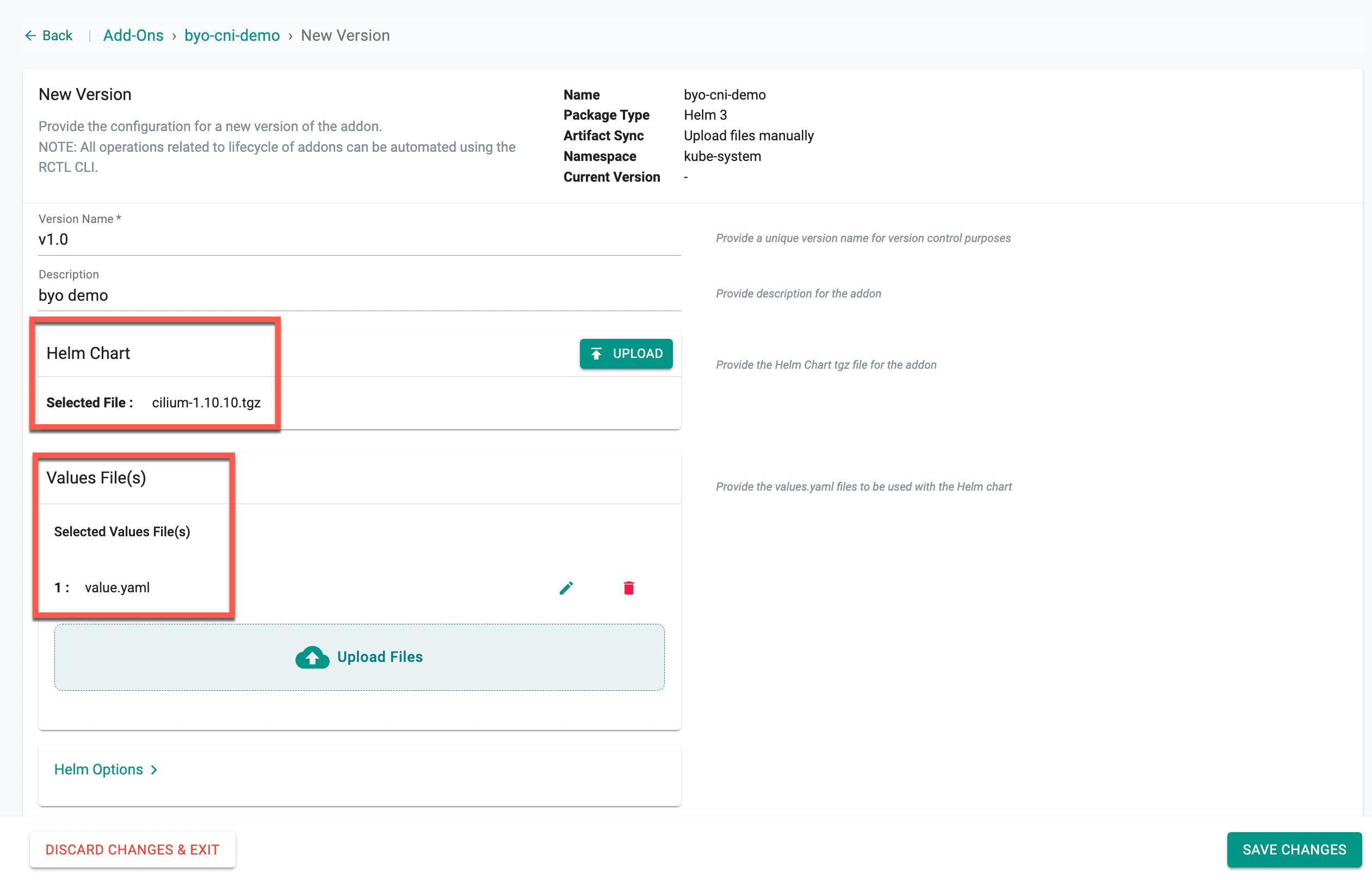 - Create a Helm 3 type add-on in the controller.