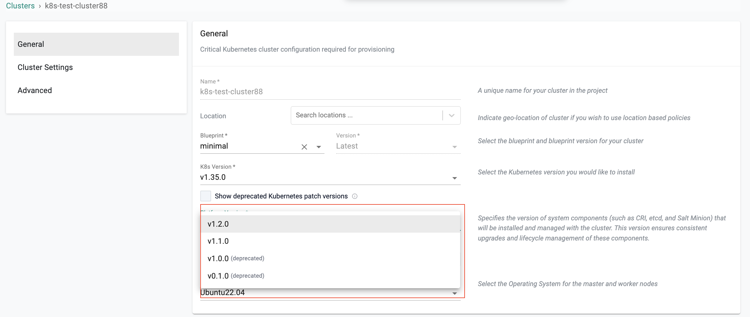 - Select cluster blueprint and version. Users can select the default-upstream blueprint based on the requirement. To use the default-upstream blueprint, a storage node is mandatory
