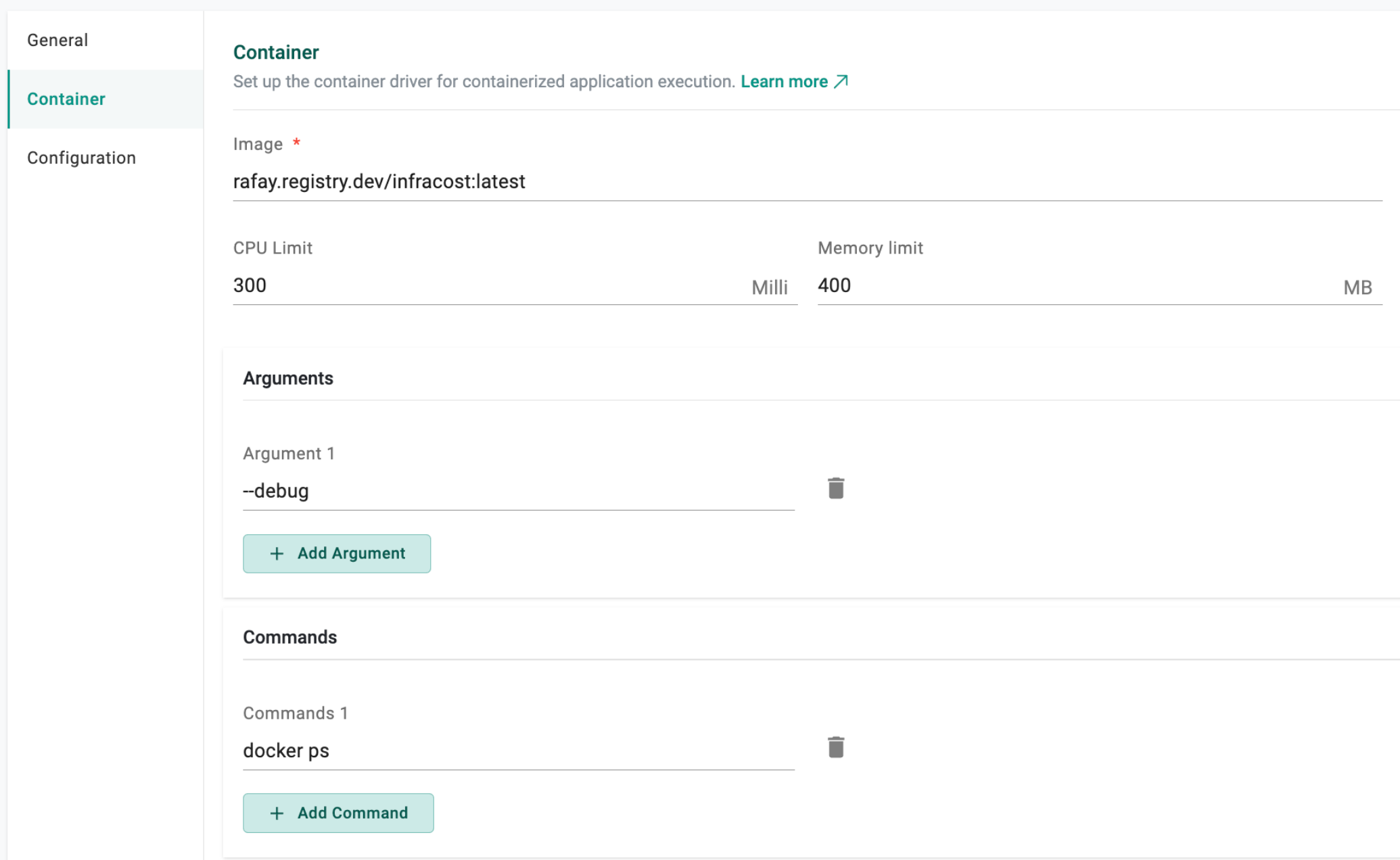 These Containers can be configured in Resource Templates as terraform provider or in any of the hooks.
