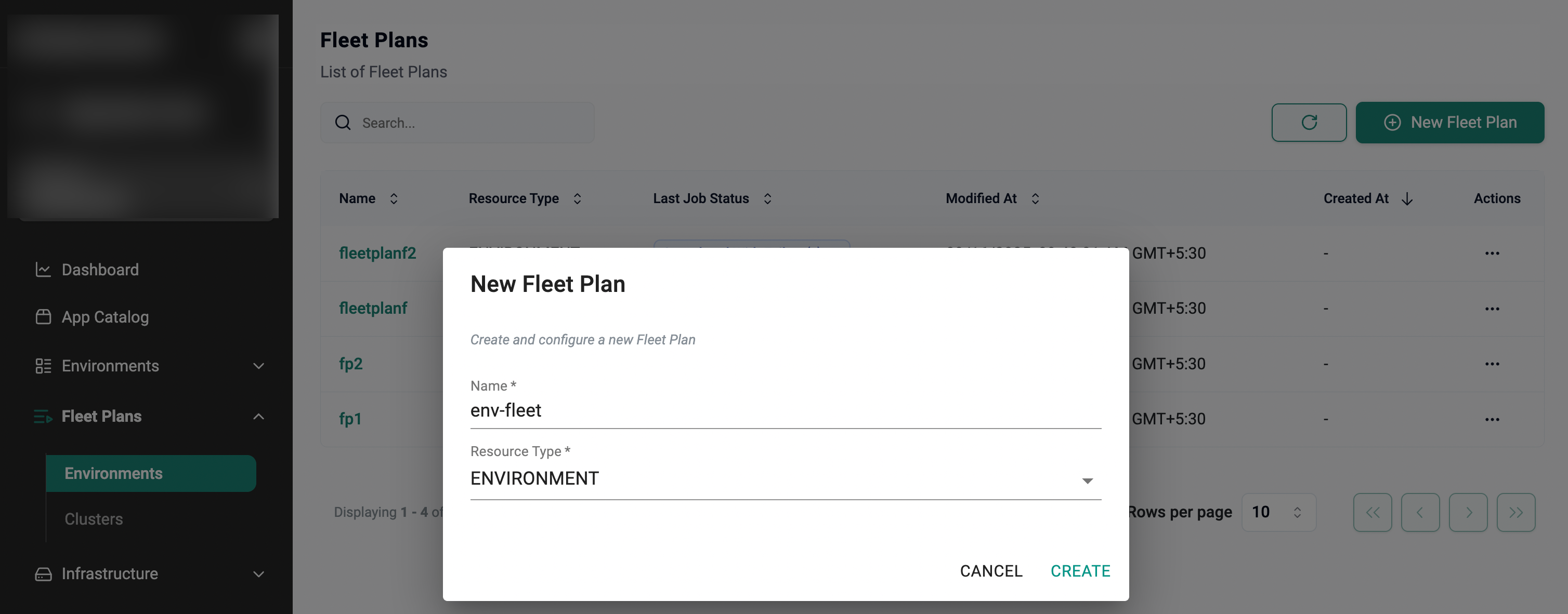 Use the Fleet Plans page to create and configure a new plan for managing multiple environments in parallel.