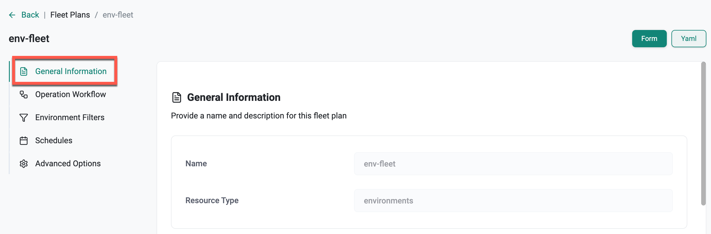 - Name: The unique identifier of the fleet plan (e.g., env-fleet).
