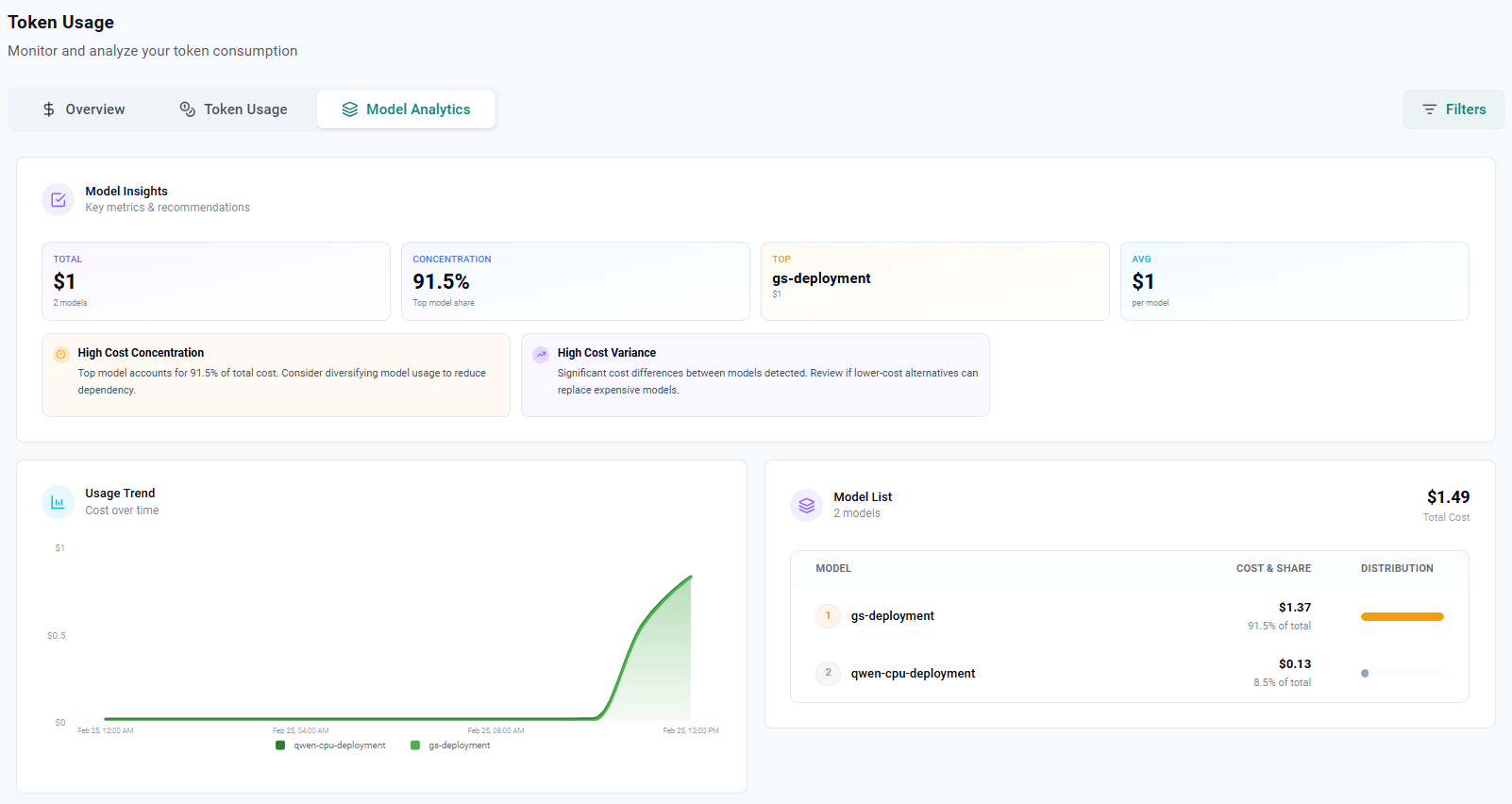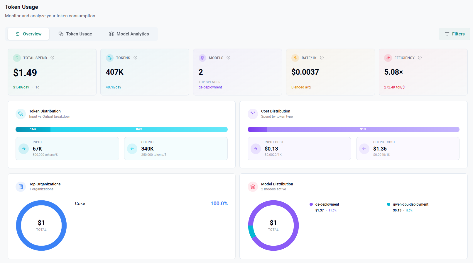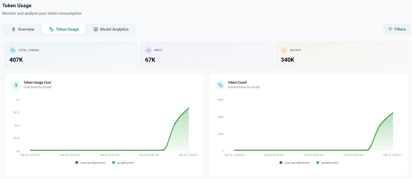 Next, you will use the Ops console to view the Token Factory usage metrics across models and tenants.