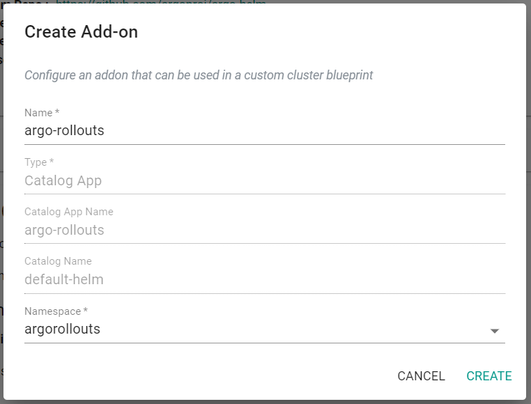 In this step, you will create a custom cluster add-on from the Catalog. The add-on will then be used in a custom cluster blueprint.