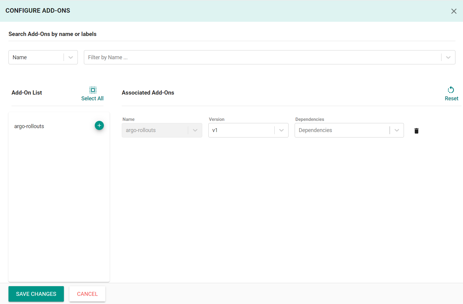- Click the + symbol to add the argo-rollouts add-on to the blueprint