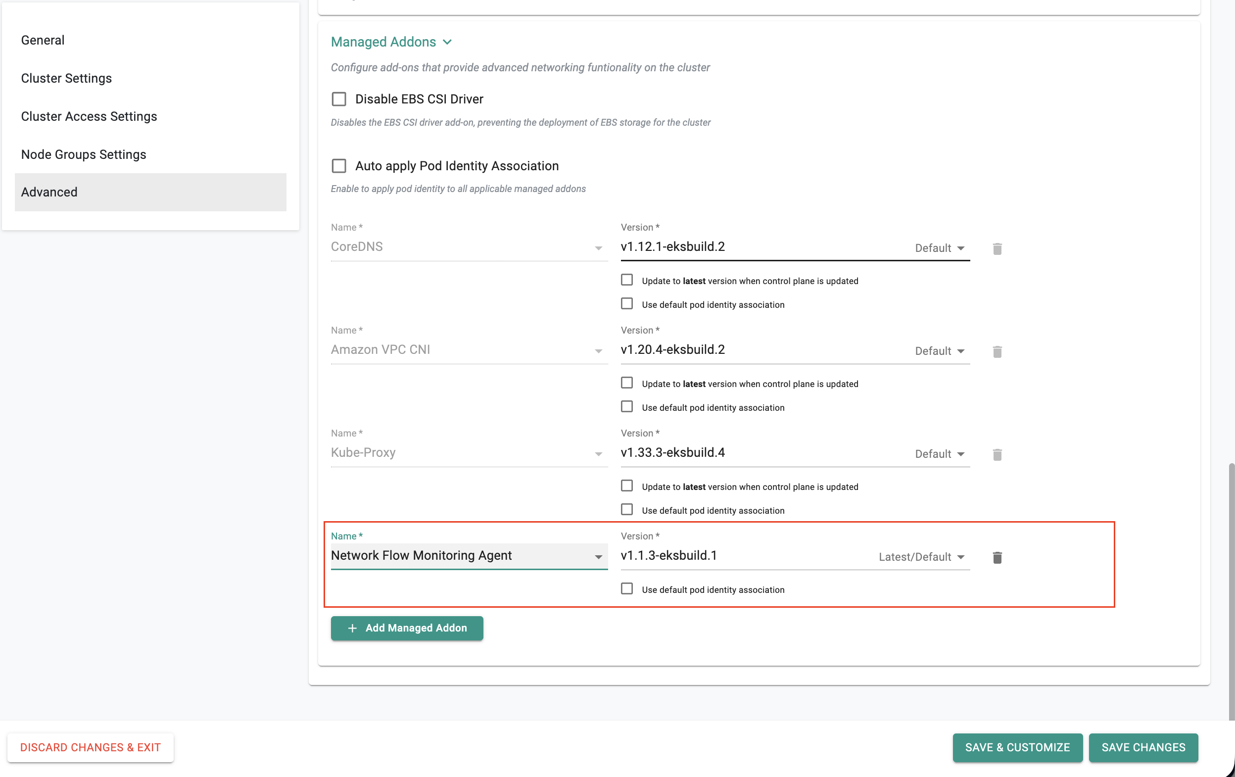 The Network Flow Monitoring Agent addon is now supported for EKS clusters across all interfaces (UI, CLI, RCTL, and Terraform).