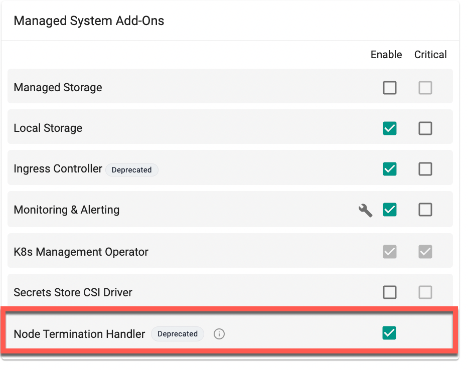 The Node Termination Handler add-on can now be disabled during Blueprint configuration under Managed System Add-Ons.
