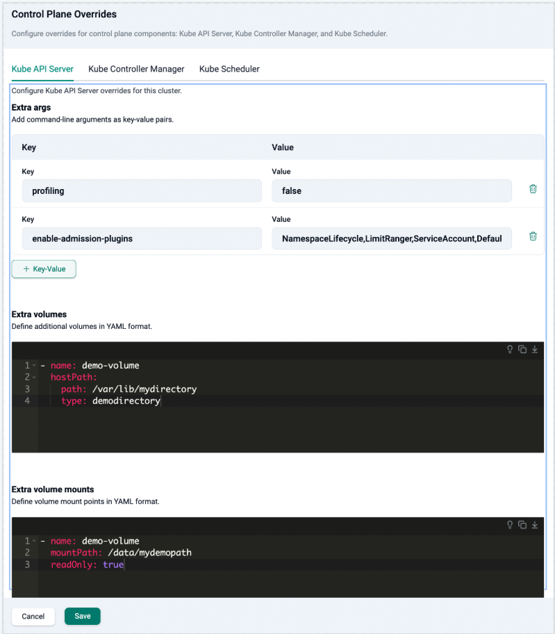 This release introduces Control Plane Overrides, enabling configuration of extra args, volumes, and volume mounts for the API Server, Controller Manager, and Scheduler via the console or cluster spec and other supported interfaces at Day-0 or Day-2.