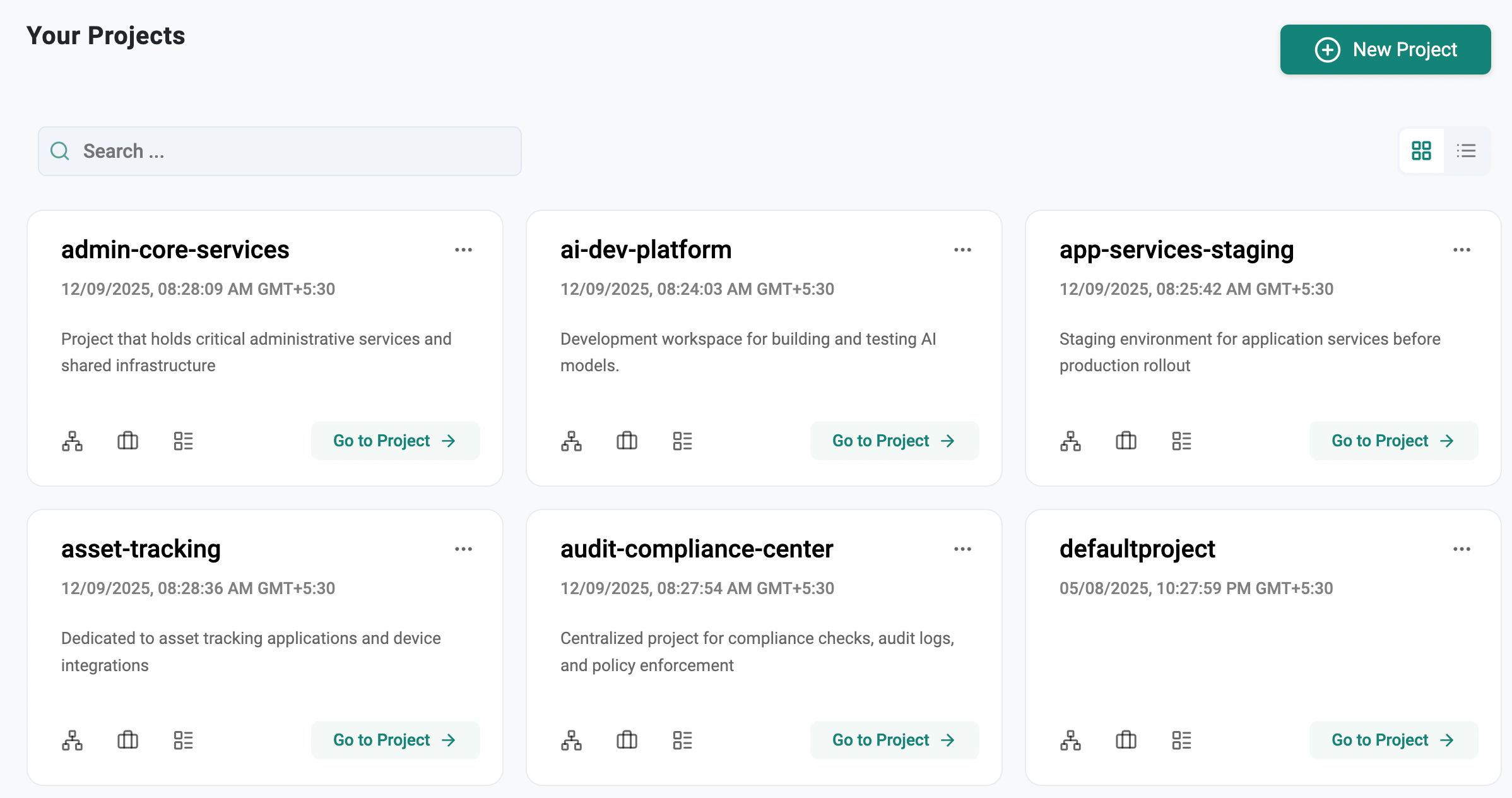 | Production | "Production" Project with a dedicated Kubernetes cluster. Project configured with least privilege RBAC so that only required users can access the project |