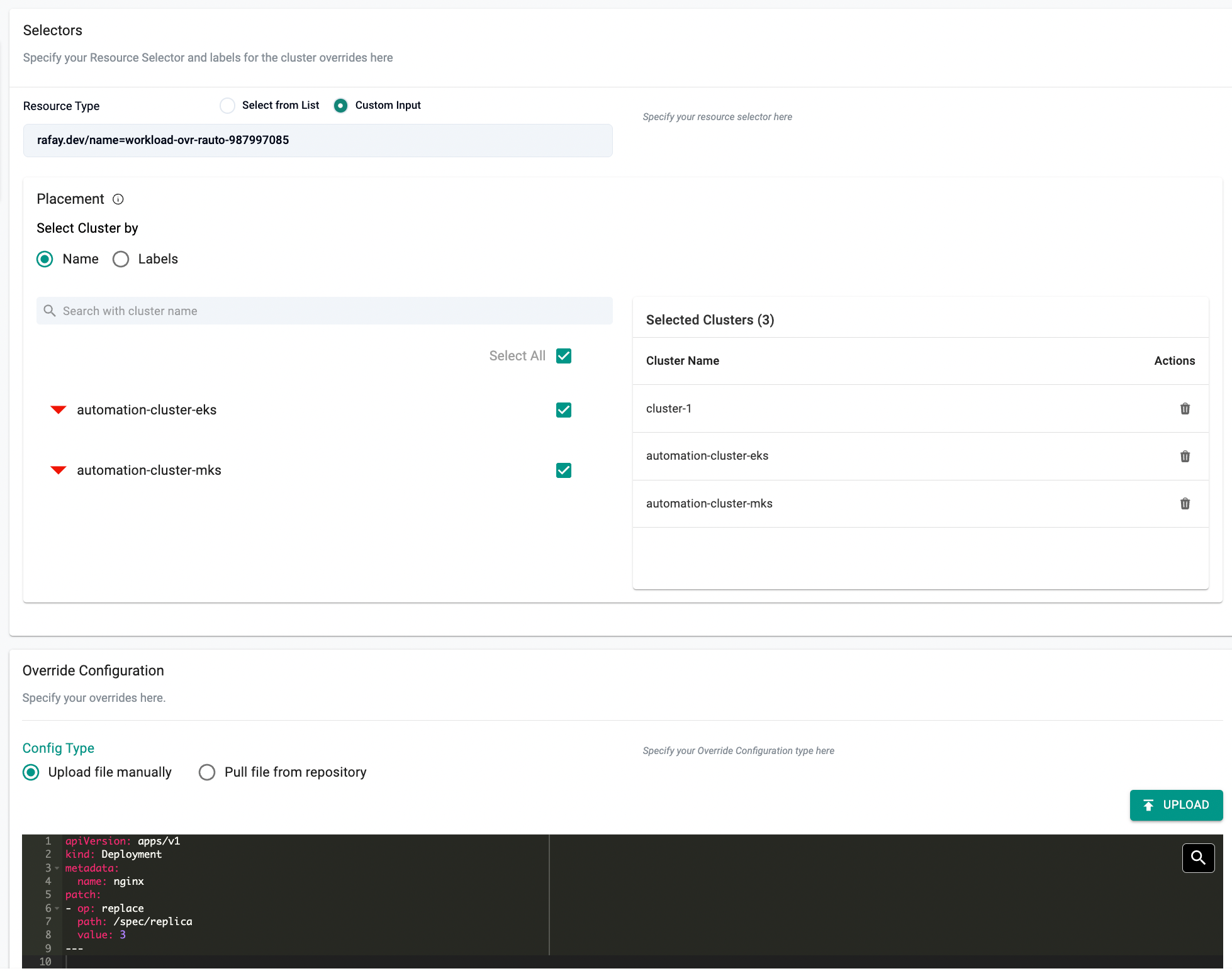 You can manage the lifecycle of cluster overrides using the Web Console or RCTL CLI or REST APIs. It is strongly recommended to automate this by integrating RCTL with your existing CI system based automation pipeline.